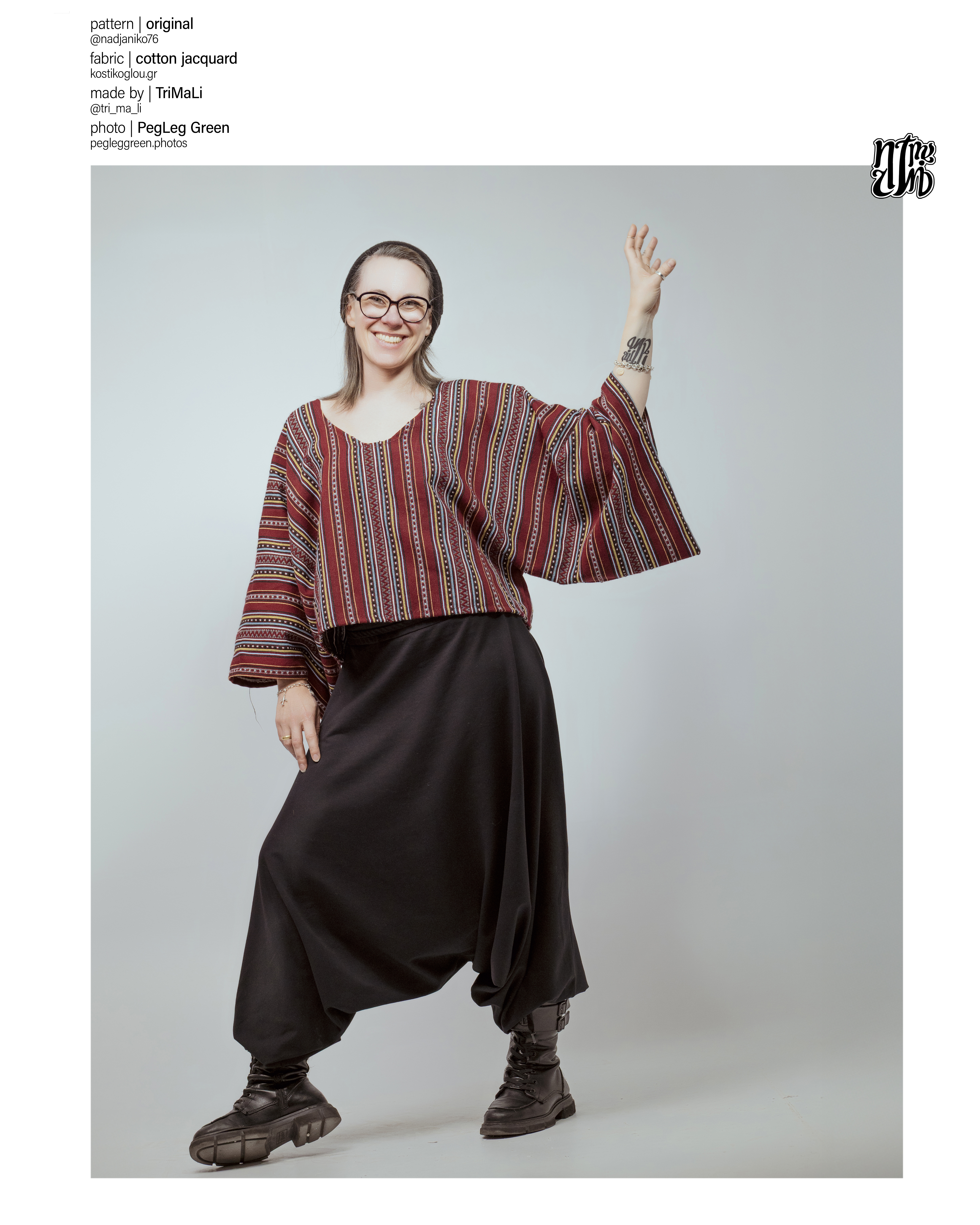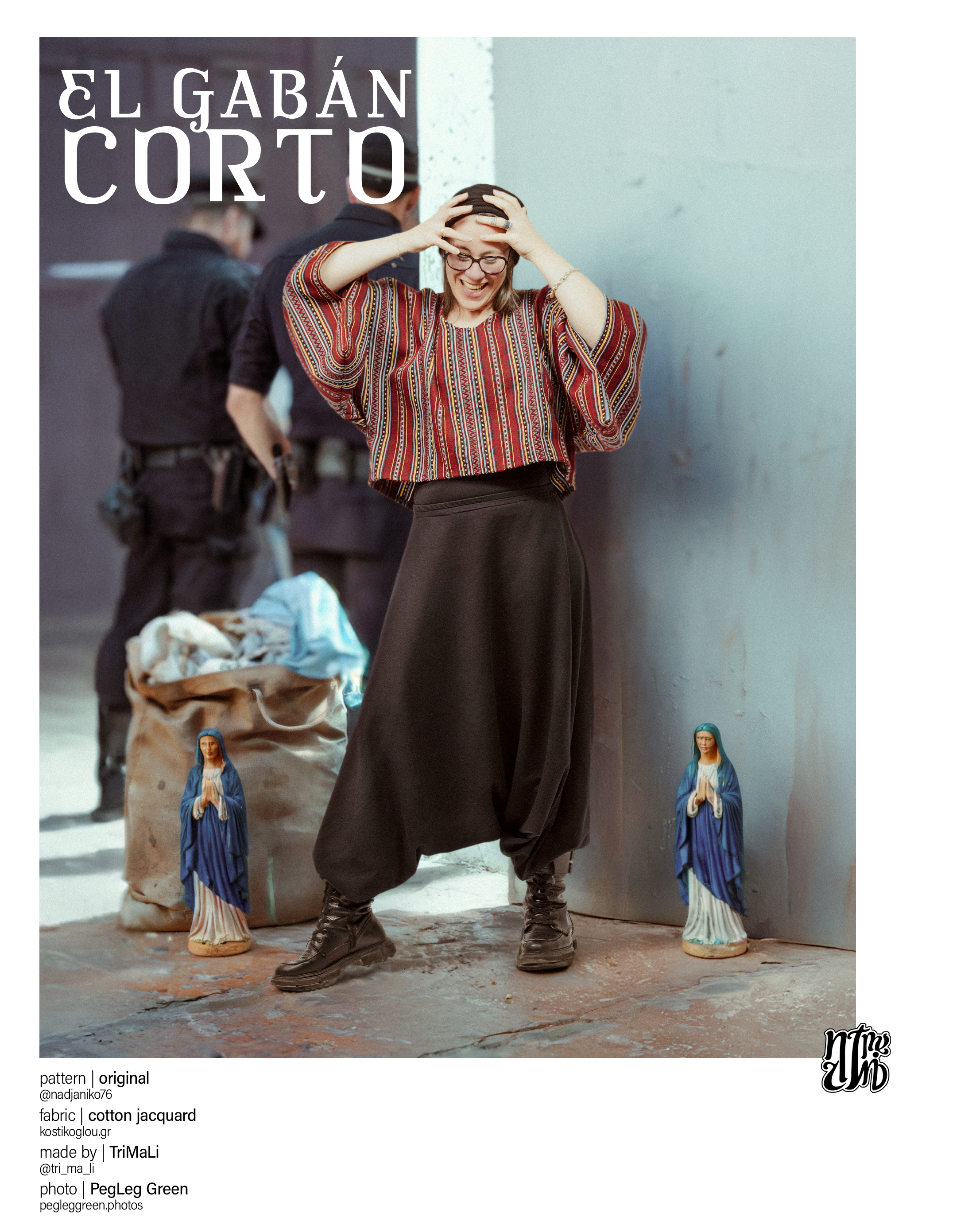 A touch of Mexico, reimagined. This crop poncho, crafted from woven jacquard cotton, stands out with its vibrant red hue and signature Mexican stripes. The wide 3/4 sleeves are partially stitched at the hem, creating a unique sleeve pocket—an elegant design detail.